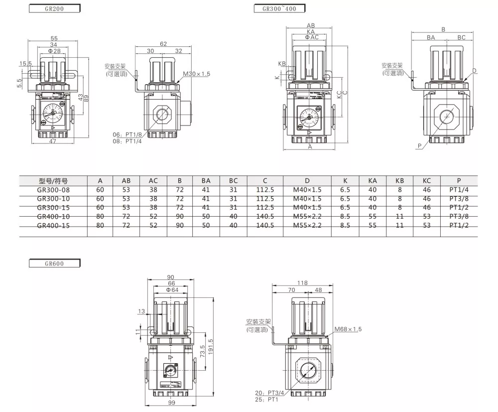 Airtac motako GR presio erregulatzailea produktuaren ezaugarriak: