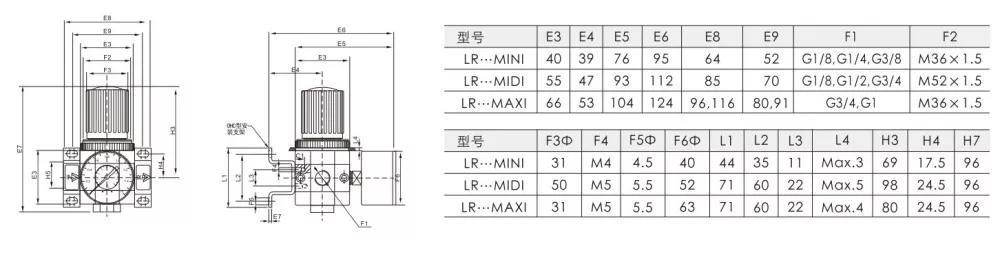 LR Presioaren erregulatzaileak egitura nahiko sinplea du eta normalean kostu sentikor eta funtzionalki aplikazio sinpleetan erabiltzen da. Airearen erregulatzailearen erabilera: tira desblokeatzeko, biratu presioa doitzeko, sakatu behera blokeatzeko