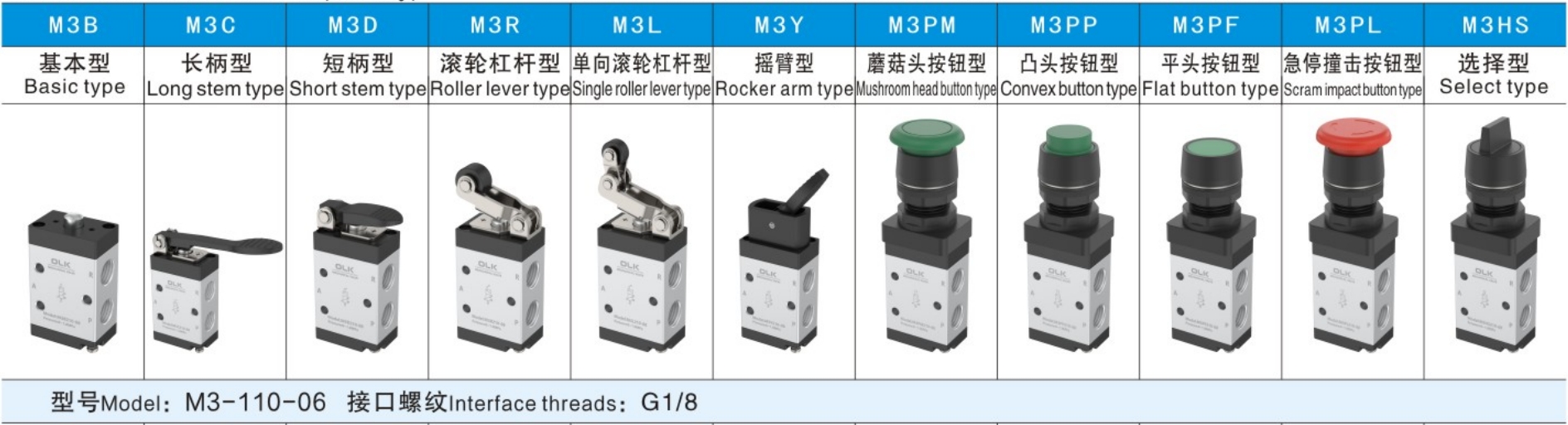 OULEIKAI M3 seriea 3/2 motako balbula mekanikoak 2 eragiketa-estatu mekanikoak ditu. Pistoi motako egitura. lerroak.