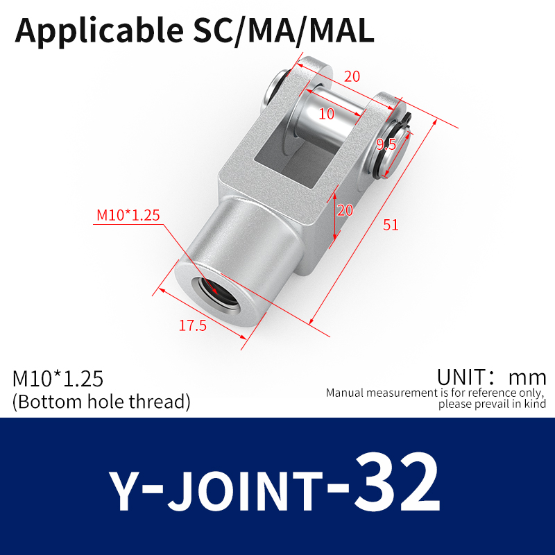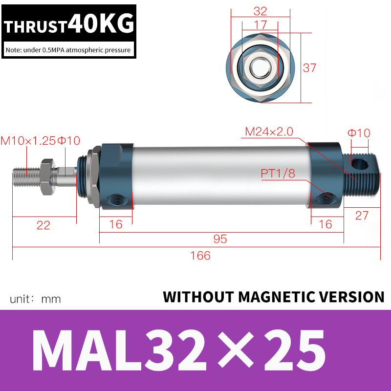 PNEUMATIKOA 32mm-ko zuloa 25mm-ko trazako aire-zilindroa Ekintza bikoitza Y konektorearekin eta 2 pcs 6mm-ko PC egokitzea MAL32x25