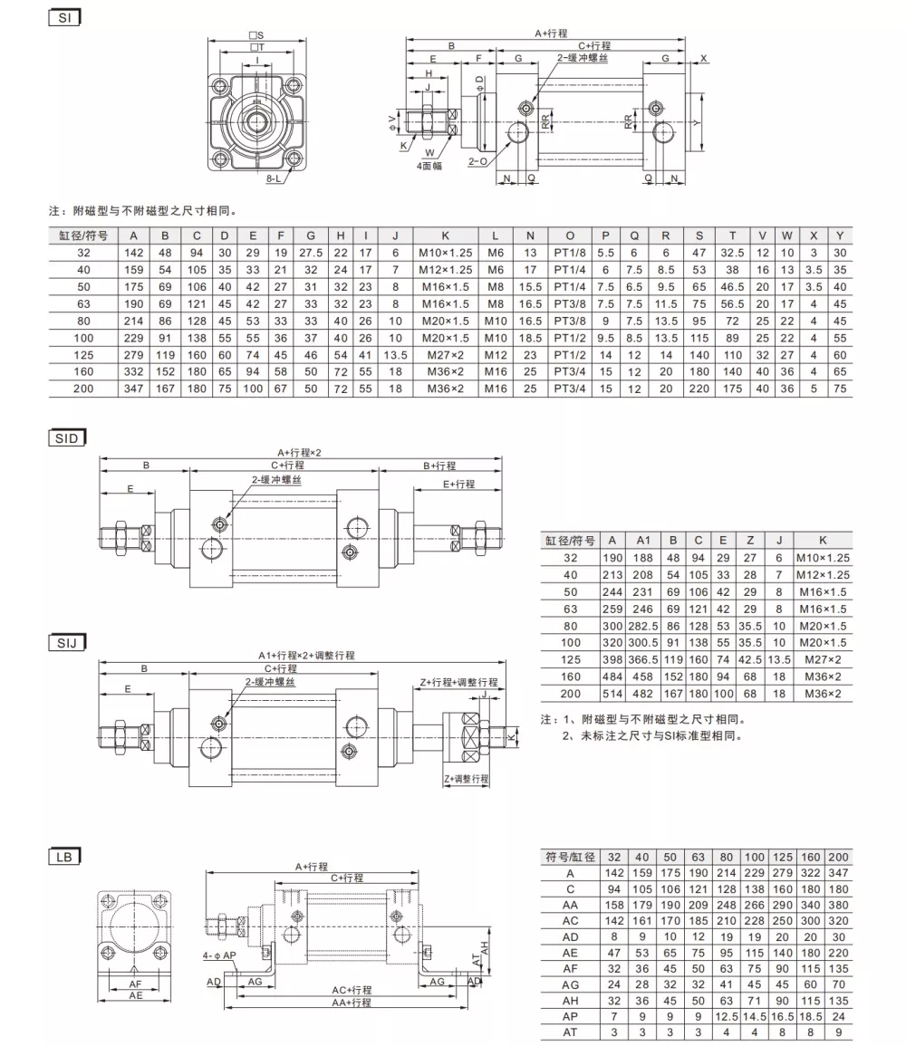 SI serie ISO15552 zilindro pneumatiko estandarra hiru motatan dago eskuragarri: efektu bikoitzeko estandarra, SID haga bikoitzeko efektu bikoitza eta SIJ haga bikoitzeko efektu bikoitzeko trazu erregulagarriarekin. ISO 15552 arauarekin bat datoz, hau da, instalazioaren neurriak baino handiagoak diraSU zilindro pneumatikoaktamaina berekoak. Osagarri finkoak ez dira trukagarriak eta ISO 15552 (lehen ISO 6431) zehaztapenekin bateragarriak dira soilik.